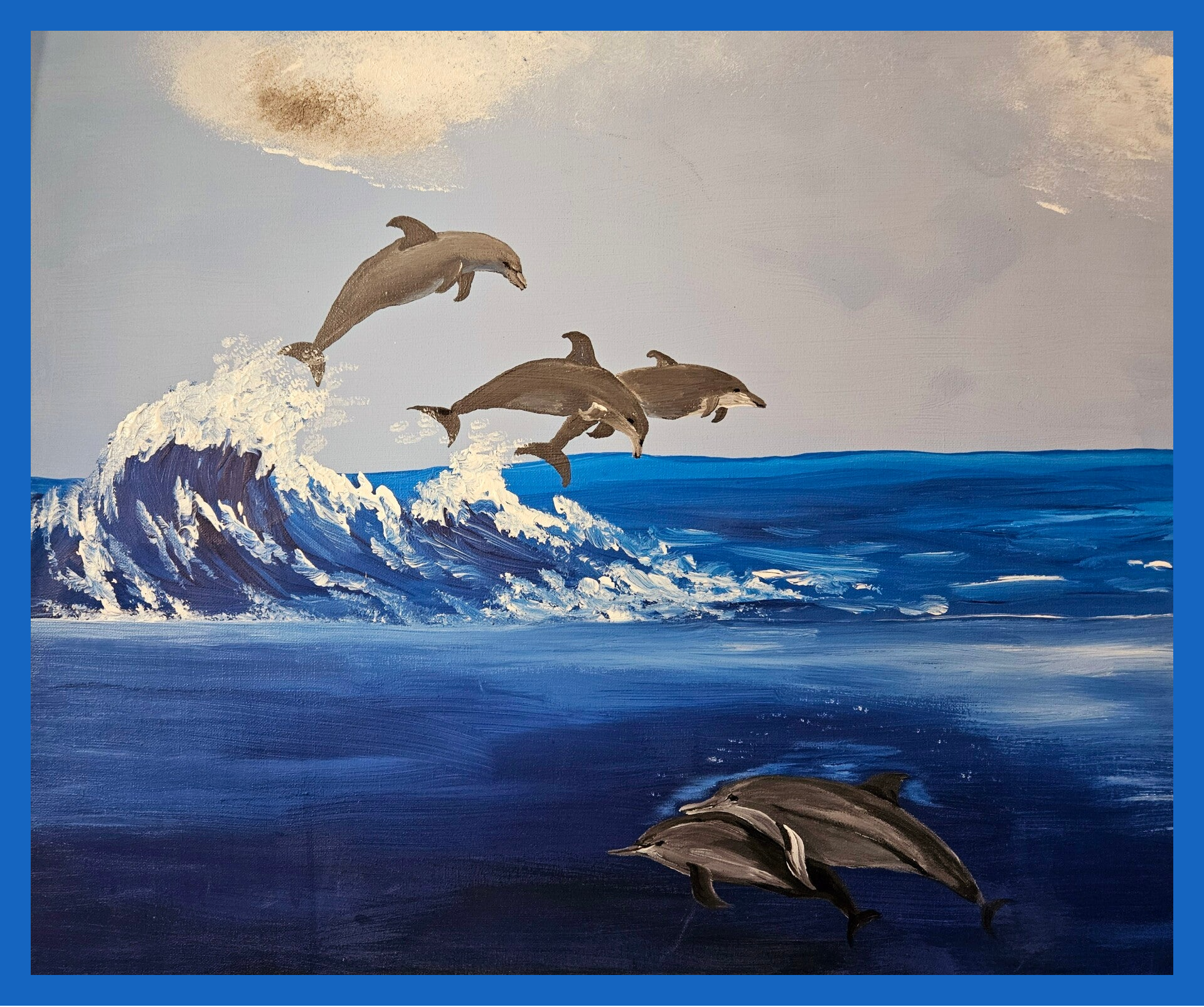 Weit draußen, wo das Meer den Himmel berührt, lebte eine kleine Gruppe von Delfinen.